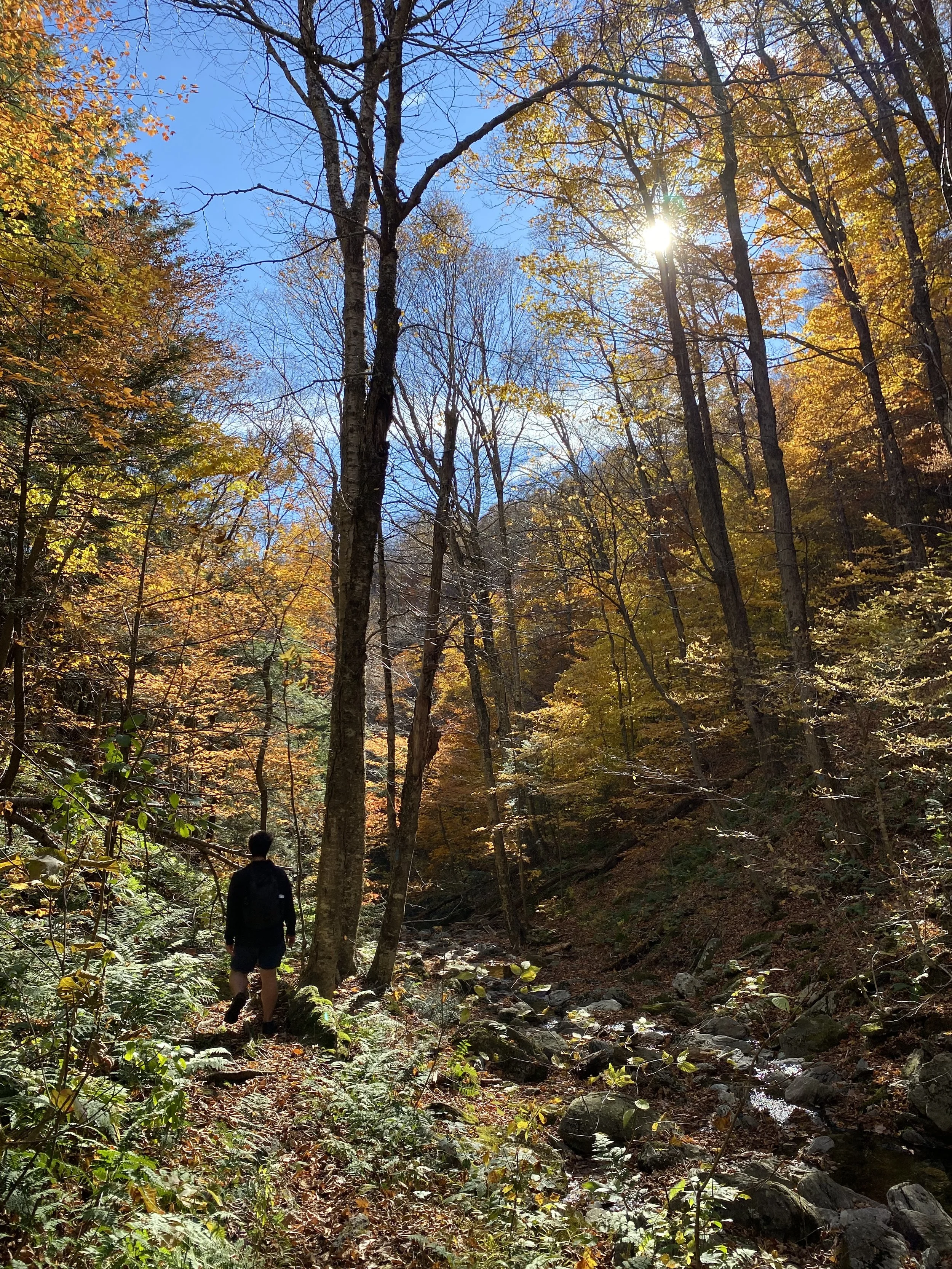 You would think that walking along narrow, winding trails cutting through thick woods with rocks and roots underfoot would be very treacherous, and that you would slip fall often. And yet it’s quite the opposite! Your natural poise kicks in when on rocky, uneven trails. The eyes naturally look down and ahead to the next few steps, and you just walk ahead with relative ease. I would speculate that it’s an evolutionary thing. It’s the “animal brain” at work without much mental effort or strain at all. Indeed you can have in-depth conversations while hiking on such irregular terrain. In fact I think hiking on uneven terrain actually focuses the mind for thought and conversation—something about how part of unconscious mind being focused and zoned-in (and in motion) somehow allows the conscious, thinking mind to really run free. Who knows… but it’s real. You are GOOD AT HIKING BY NATURE!